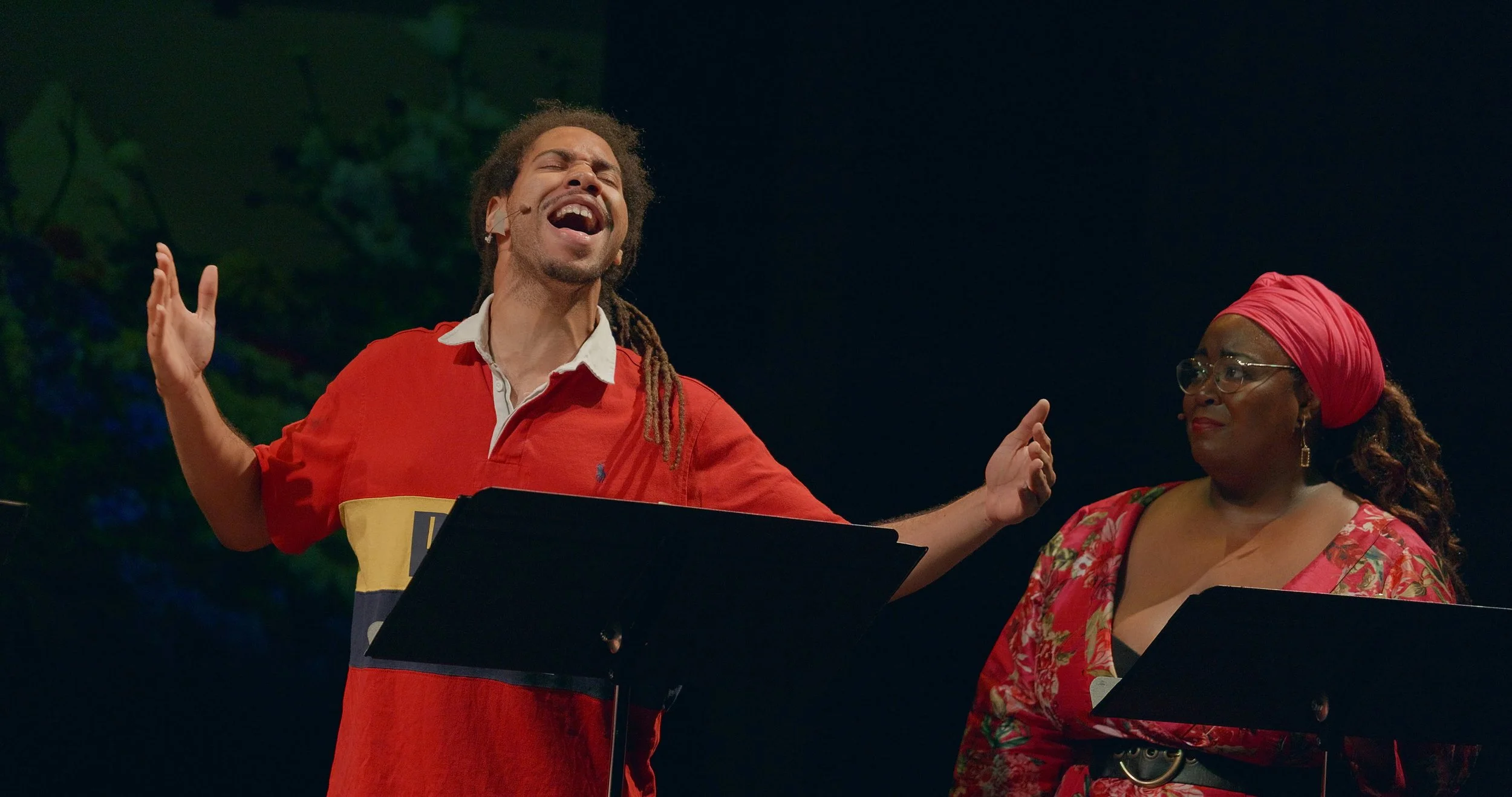 Nika (Claudine Mboligikpelani Nako) and Bernadette (Be Russell), sing “Dark Times” from Photosynthesis in Photosynthesis: Seed to Stage at Langston Hughes Performing Arts Institute in Seattle, WA.